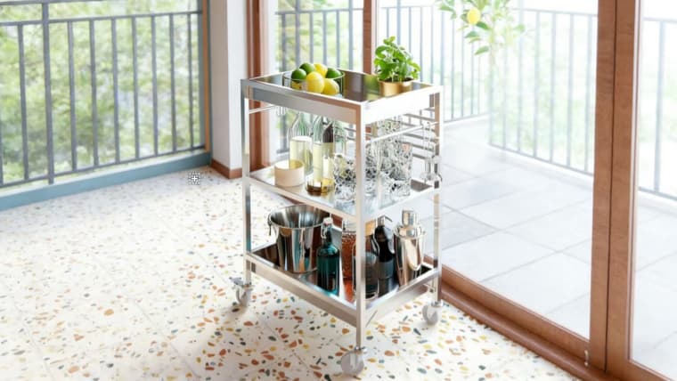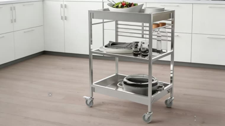 3-tier stainless steel rolling cart designed for kitchen storage and mobile organization. Optimized shelf structure improves stability, accessibility, and secure item handling.