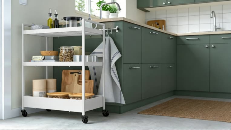 Structure: 3-tier storage cart with handle