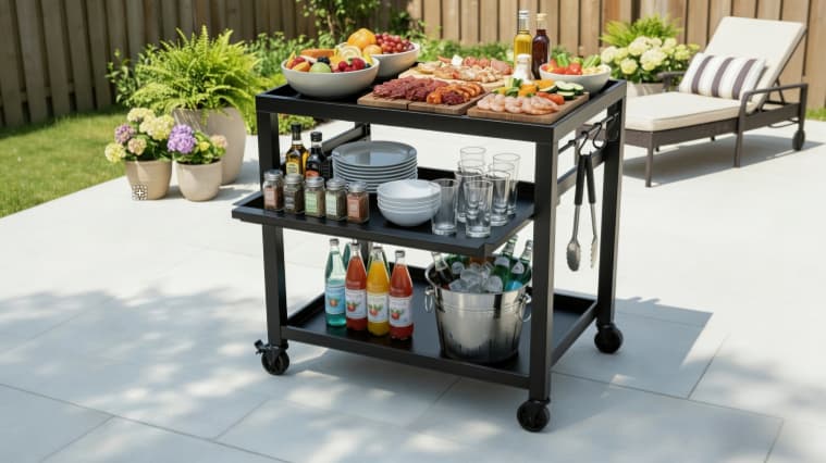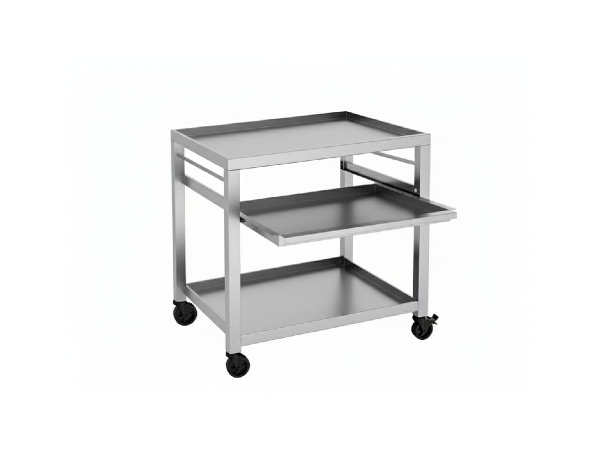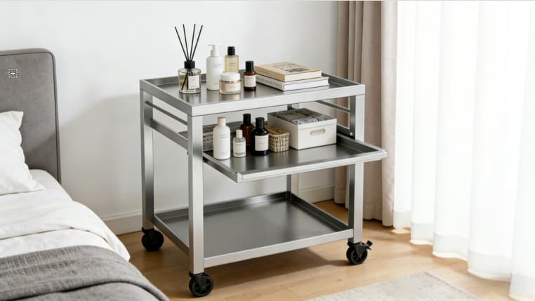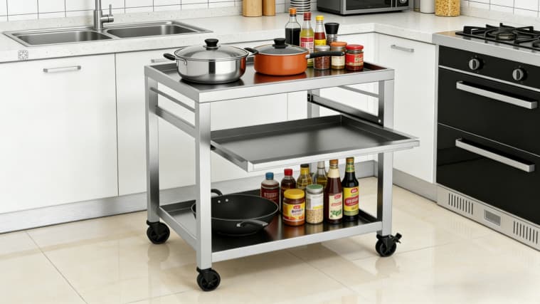 Middle tier features a pull-out shelf for quick access and flexible use