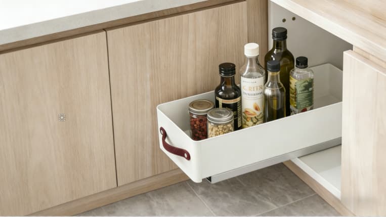 Single-tier pull-out cabinet basket for modern kitchen cabinets and storage systems. Designed with durable metal construction and smooth sliding, ideal for OEM/ODM bulk supply.